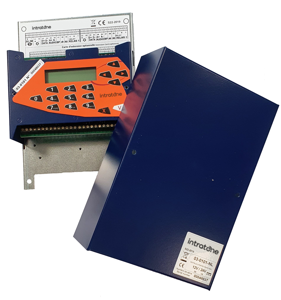 De Intratone centrale voor twee deuren is een krachtig besturingssysteem dat een onmiddellijke en foutloze overdracht van commando’s garandeert. Deze centrale eenheid, een onmisbaar onderdeel van de basisuitrusting van de Intratone-toegangssystemen, regelt onder meer het ontsluitingsproces voor maximaal vier deuren en dus voor maximaal 1.000 daarop aangesloten appartementen. Het genereert ook event logs en auto-diagnostics of zendt alarmsignalen uit.